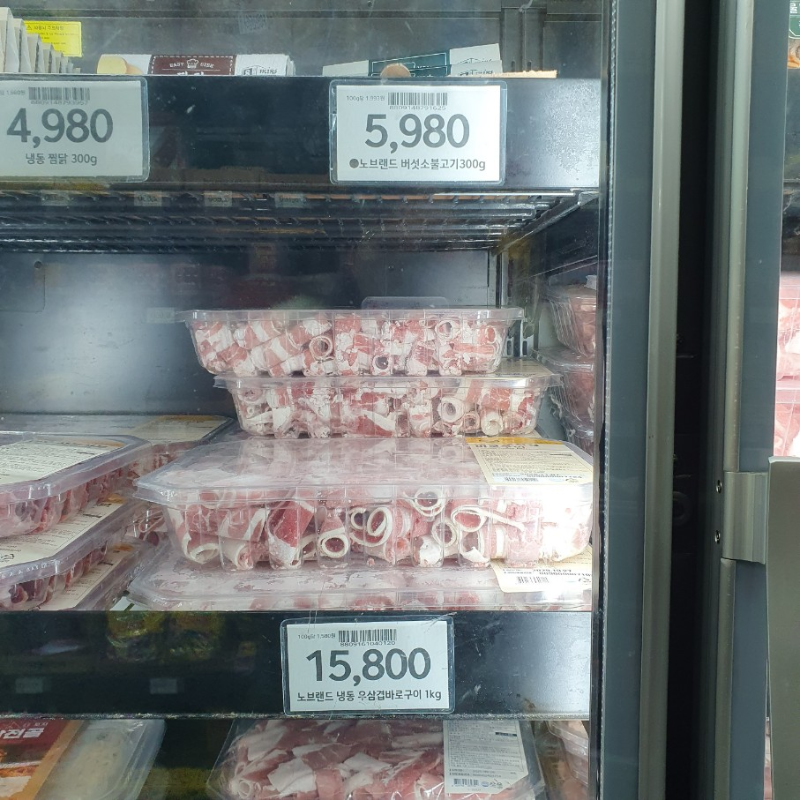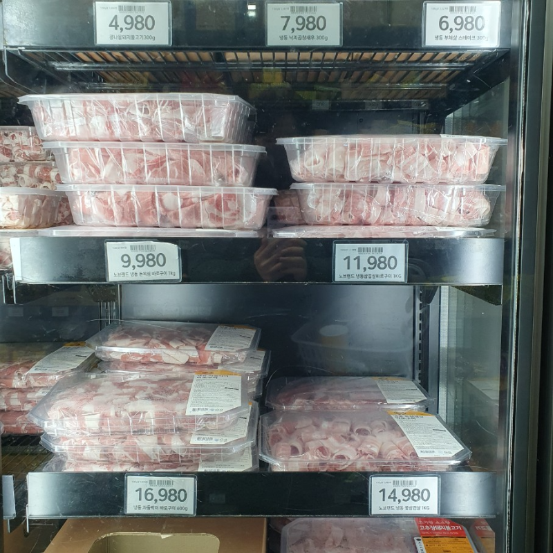 노브랜드에서는 주로 냉동고기만 삽니다. 생고기는 확실히 식자재 마트가 더 신선하고 저렴한 것 같아요. 행사가라고 해도 식자재 마트를 못따라 가는 것 같아요. 대신 냉동고기는 확실히 노브랜드가 품질이 균일한 편이고 평균보다 합리적인 가격이에요.