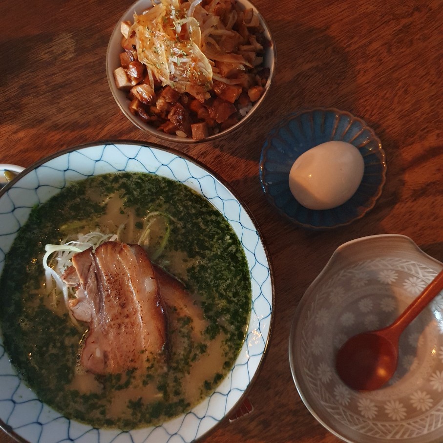 미도리케메는 기본 라멘인 키츠네에 바질을 넣은 컨셉의 라멘이었는데요. 저처럼 향신료나 허브를 엄청엄청 좋아하는 사람에게는 조금 더 향이 강했으면 하는 아쉬움이 있더라구요. 아무래도 동남아 향신료 강도에 적응이 된 것 같습니다. 다른 분들의 리뷰를 보니까 바질 향이 진해서 대부분 만족해 하셨거든요.