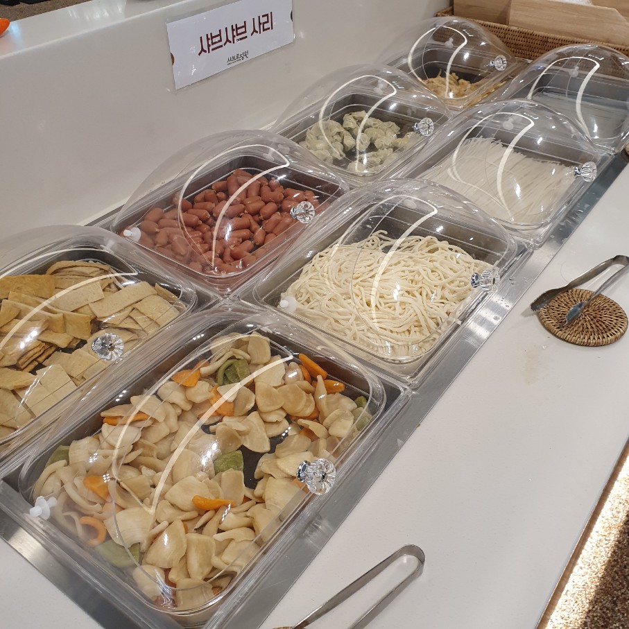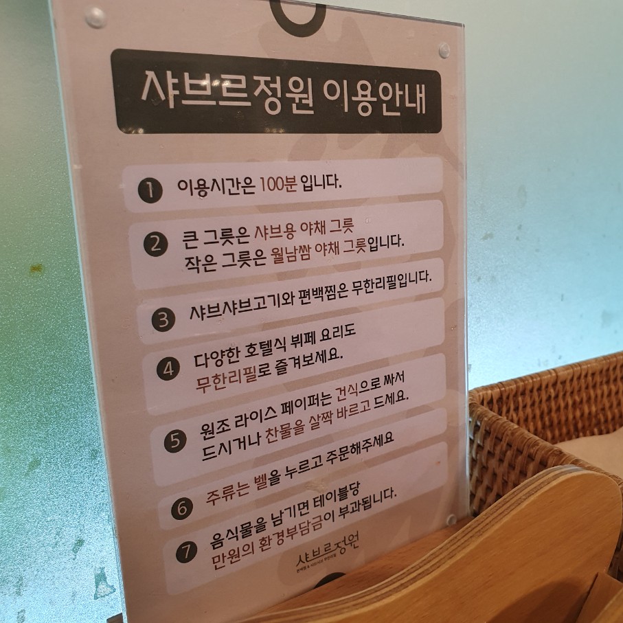 프랜차이즈는 아니고 자체적으로 운영하는 곳이라 생각했는데 얼마 되지 않아서 수도권 일대에 몇군데가 더 생겼더라구요. 역시나 저희 동네 샤브르정원이 본점! 그래서인지 며칠 전까지 내부 인테리어 공사를 하느라 약 보름 넘게 영업을 안하더라는. 신랑이랑 지나가면서 "오픈한지 얼마 안되었는데 인테리어를 왜 또하지?!"라는 대화를 했었는데 아마도 본격적인 프랜차이즈 사업으로 확장하면서 프랜차이즈에 맞는 인테리어나 설비공사를 진행한 것 같더라구요. 과거 프랜차이즈 업체에서 디자인 개발을 담당했던지라 요런 거에만 눈길이 나도 모르게 ㅋㅋㅋ