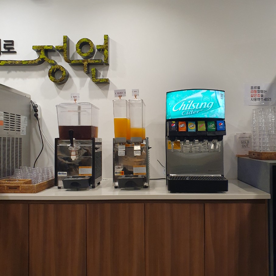 음료나 후식도 꽤 다양한 편이에요. 기본 탄산음료 5가지, 주스류 3가지, 아이스크림, 아메리카노까지!